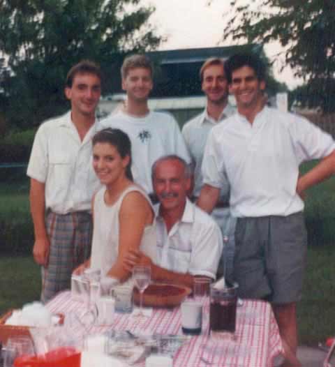 en voyant cette photo. C'est moi qui suis derrière l'appareil photo. Cette photo a été prise dans la cour chez nous, tandis que quelques amis (Jean-Louis et Carmen, Pierre Laberge, Jean Christophe Houde et Richard, avions organisé une petite fête avant le grand voyage de Réal en Europe. Je ne sais même plus en quelle année. Richard et moi étions mariés puisque ça se passait chez nous. Est-ce que Jean-Louis et Carmen étaient mariés ? Je me souviens de cette belle soirée. Il faisait un temps magnifique.
